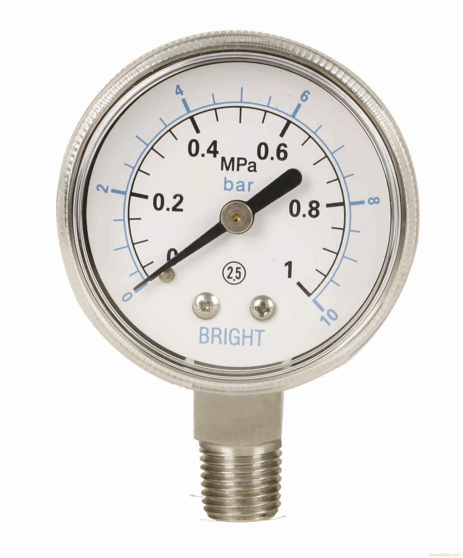 產(chǎn)品描述:壓力表(英文名稱:pressure gauge)是指以彈性元件為敏感元件,測(cè)量并指示高于環(huán)境壓力的儀表,應(yīng)用*為普遍,它幾乎遍及所有的工業(yè)流程和科研領(lǐng)域。在熱力管網(wǎng)、油氣傳輸、供水供...