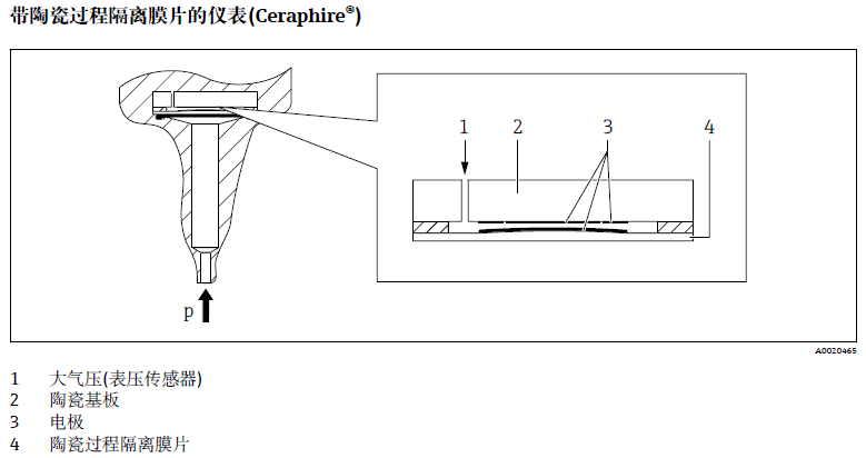 陶瓷傳感器是非充油傳感器,即過程壓力直接作用在堅(jiān)固耐用的陶瓷過程隔離膜片上,導(dǎo)致膜片發(fā)生形變。陶瓷基板電*和過程隔離膜片電*可以檢測與壓力成比例關(guān)系的電容變化量。陶瓷過程隔離膜片的厚度確定了測量范圍。